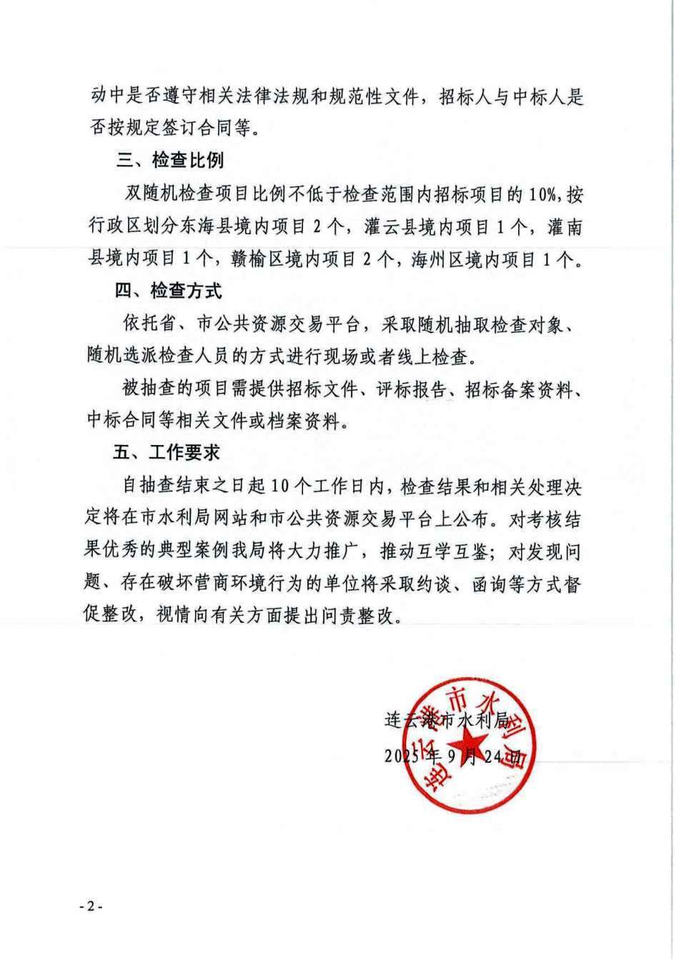 市水利局关于开展2025年水利工程招标投标“双随机、一公开”检查工作的通知
