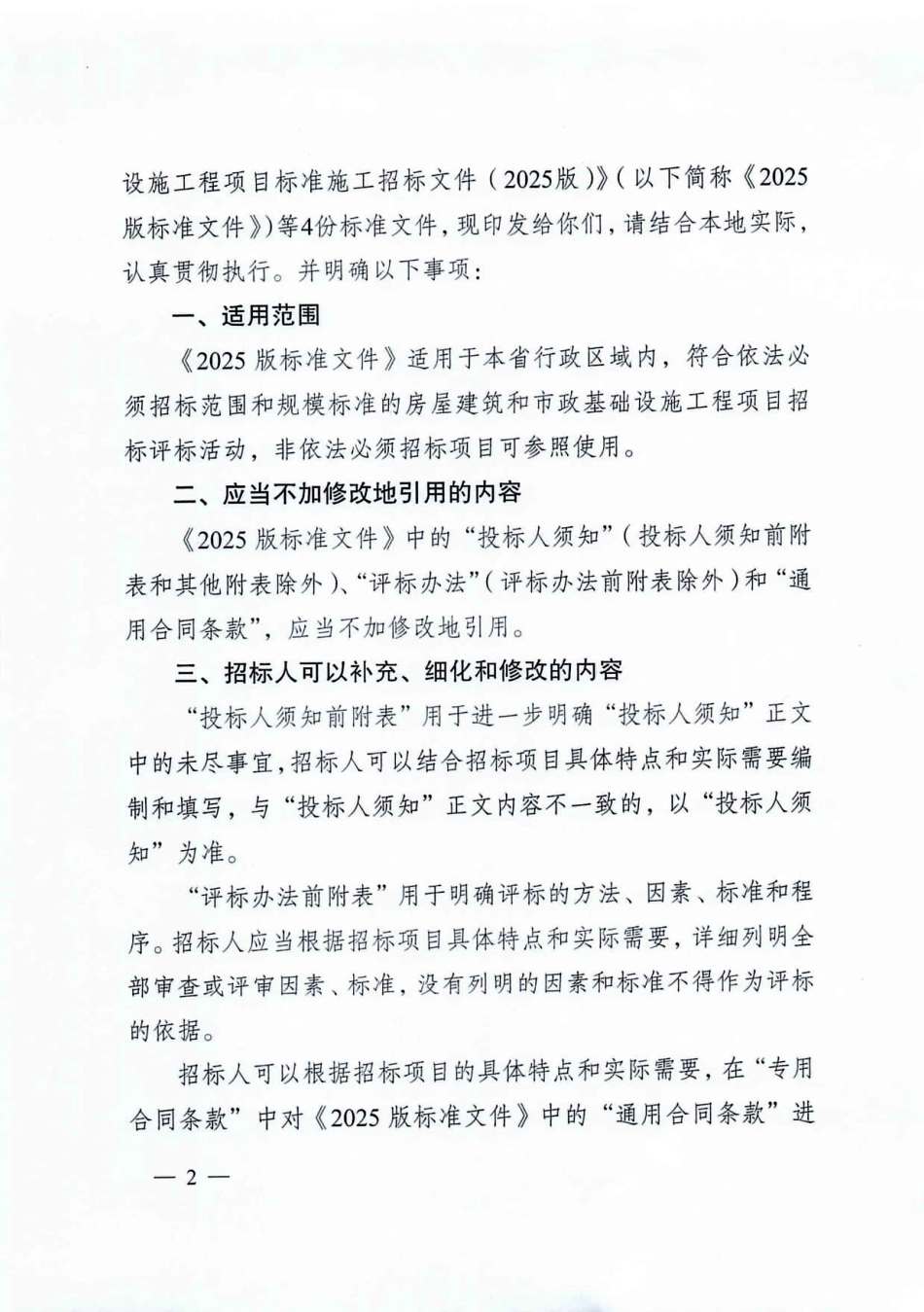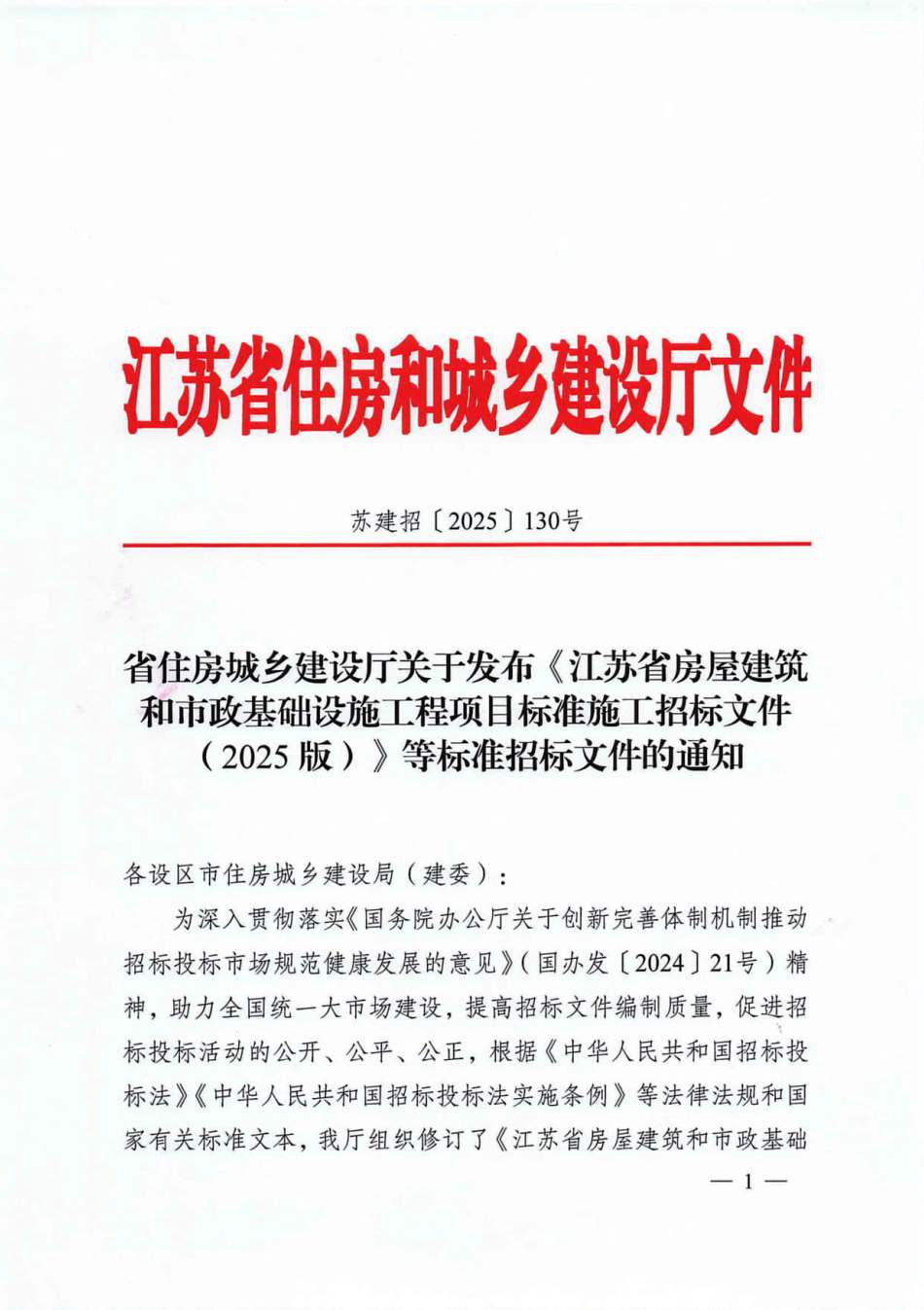 省住房城乡建设厅关于发布《江苏省房屋建筑和市政基础设施工程项目标准施工招标文件(2025版)》等标准招标文件的通知