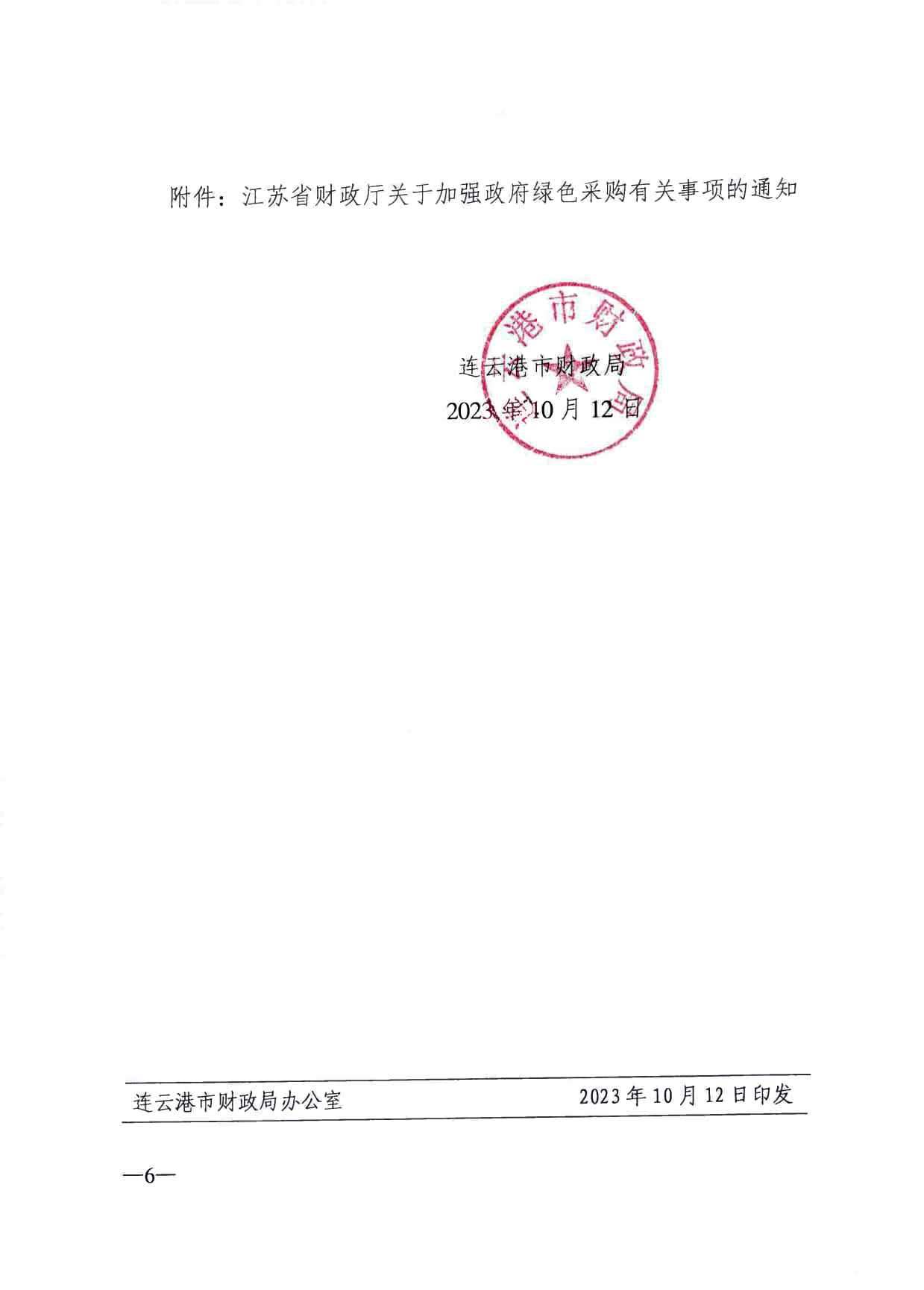 【节能环保】转发江苏省财政厅关于加强政府绿色采购有关事项的通知(连财购〔2023〕28号)