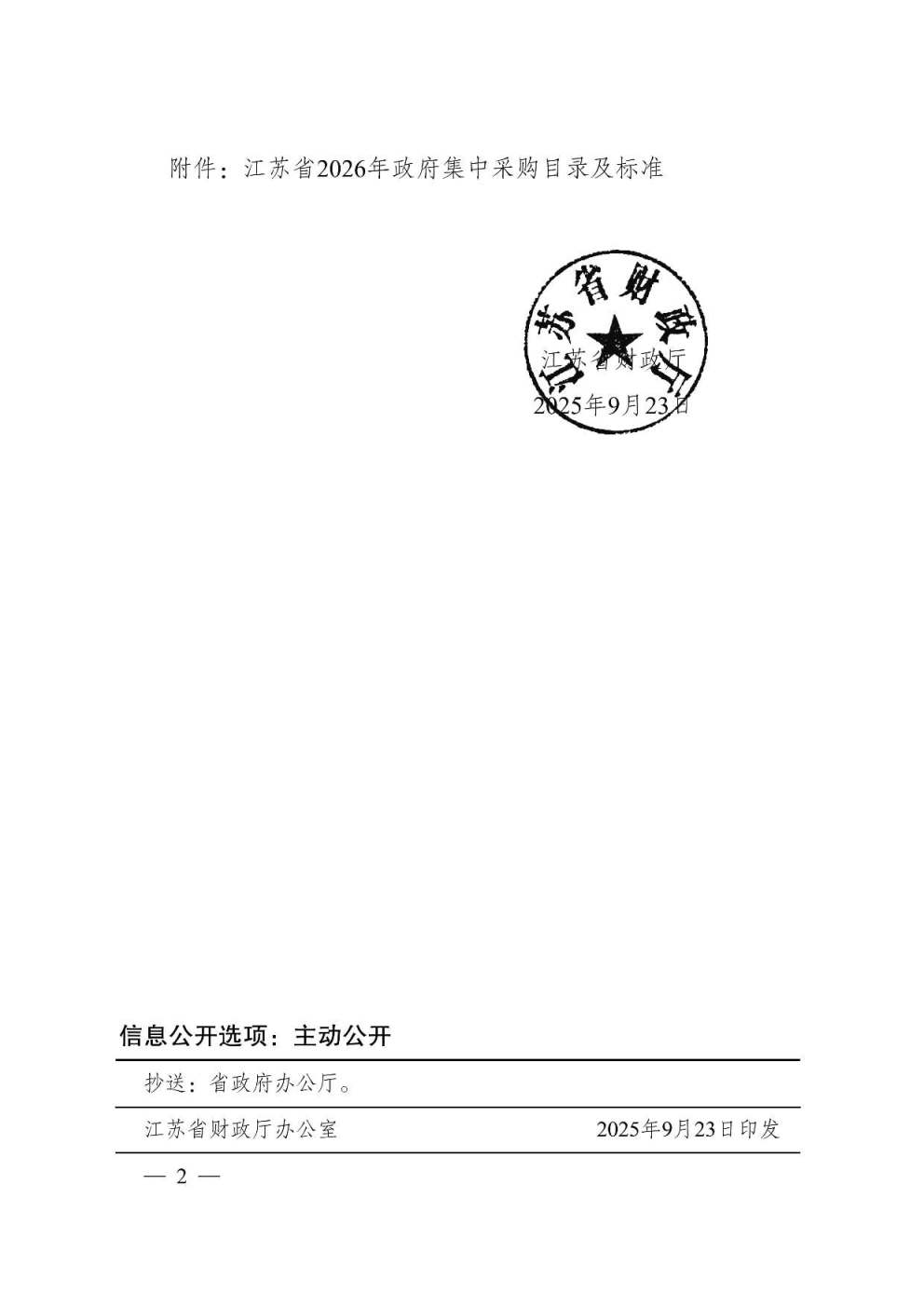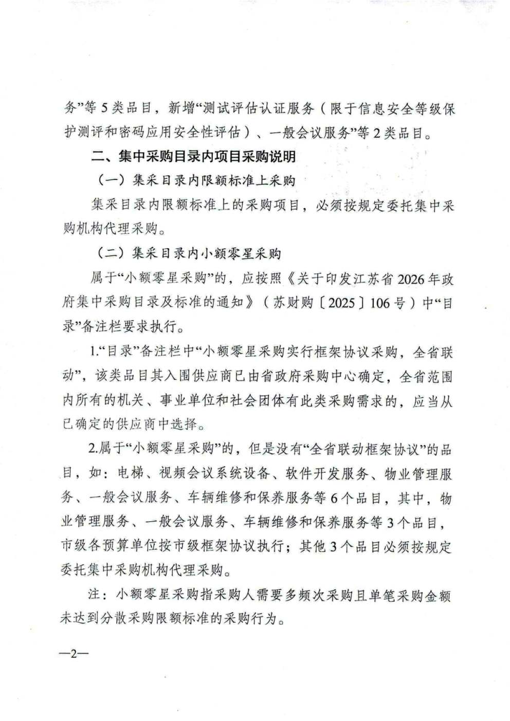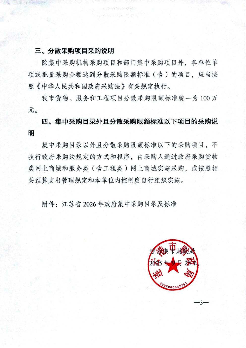 【集中采购目录】关于转发江苏省2026年政府集中采购目录及标准的通知(连财购〔2025〕53号)