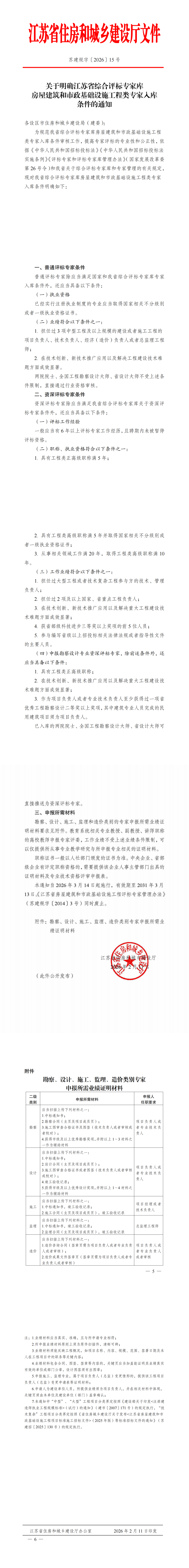 关于明确江苏省综合评标专家库房屋建筑和市政基础设施工程类专家入库条件的通知